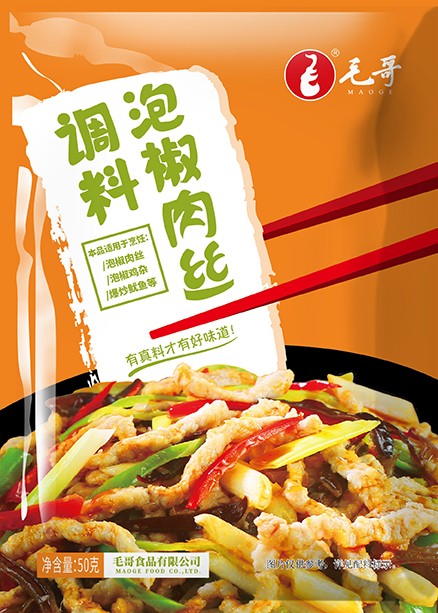 2、鍋內(nèi)倒入適量植物油燒熱后,放入肉絲翻炒,再加入本調料炒香;
