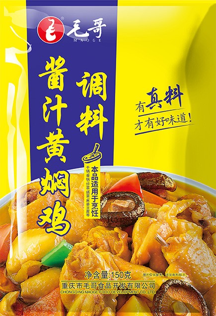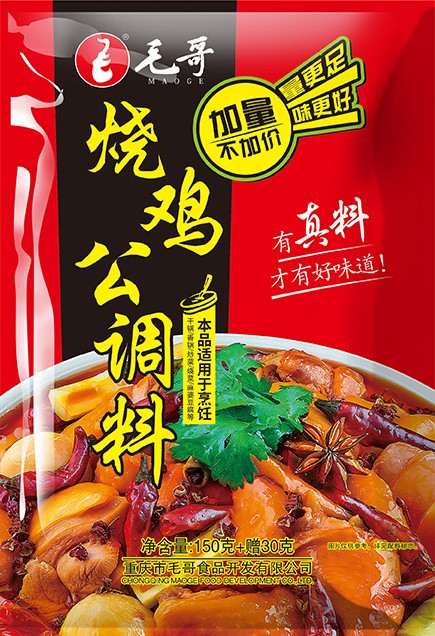 2、鍋中倒入150克左右植物油燒至八成熱,然后放入兩片姜和雞肉塊爆炒,再加入本調料翻炒均勻,最后加入300-500克清水,雞肉燒熟即可食用。
