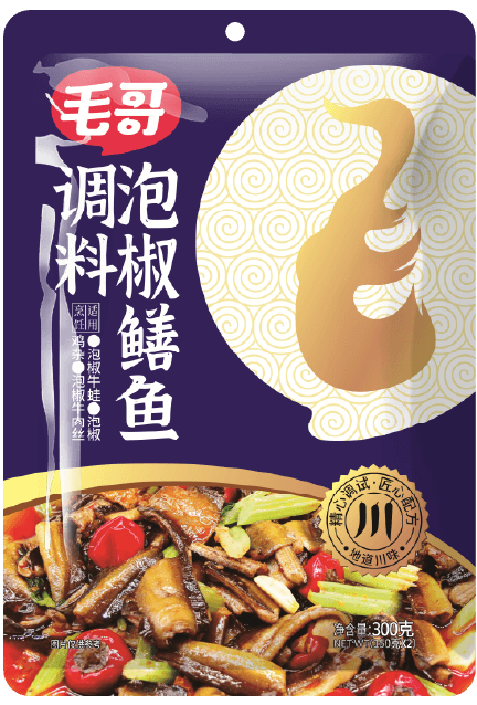2、鍋中倒入100克左右植物油燒至八成熱,放入鱔魚片爆炒,再加入一小袋本調料炒香;